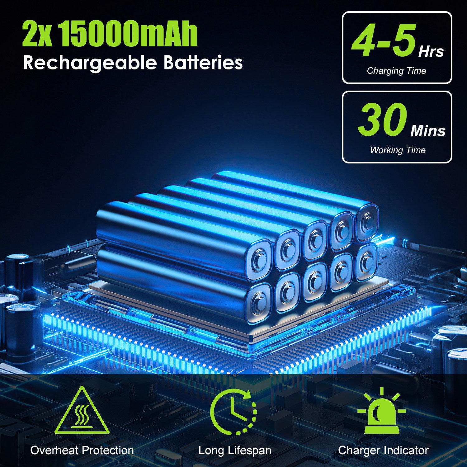 - Powered By: 15,000mAh Rechargeable Battery(10Cell*1500mAh; Not for individual use)