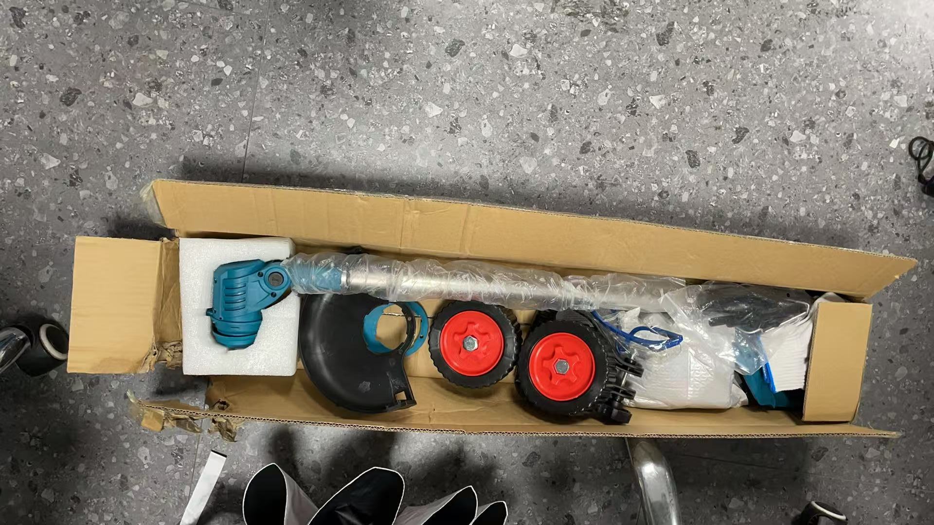 Protective Complete Kit: The battery powered weed whacker includes anti-slip gloves and stabilizer wheel for wet trimming (ponds/ditches) and slope operation